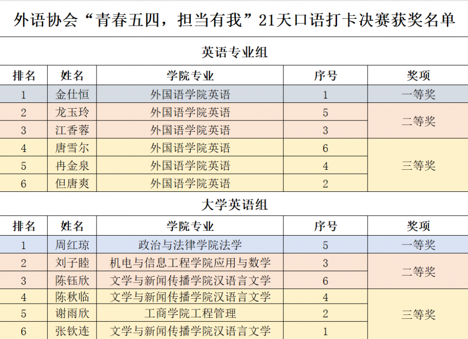 据悉,本次汇报展示决赛的选手在全校近100名线上打卡同学中产生,工作人员每天定时发布《五四运动精神的核心及意义》、《沈从文与五四运动的新文化精神》等学习任务,参加活动人员需每天在钉钉群完成跟读原文,通过人工和机器打分评出当日优秀学员。外语协会接下来将继续创新活动形式和内容,活跃校园英语氛围,提升员工对英语学习兴趣,提升英语应用能力。