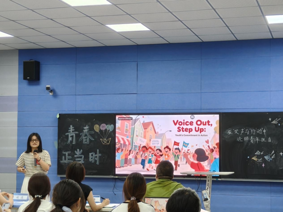 彭奕奕作总结点评,她对选手们的精彩表现给予了肯定。她强调,此次活动不仅是展现青年学子口语风采的平台,更是激励大家以“五四精神”为指引、在语言实践中深化责任担当的重要契机。她希望同学们能永葆对英语学习的热忱,持续提升英语应用能力,将语言所长与时代使命紧密结合,以青春之声传递青年担当,把所学知识转化为服务社会、投身国家发展的实际行动,在未来的广阔天地中贡献属于新时代青年的智慧与力量。