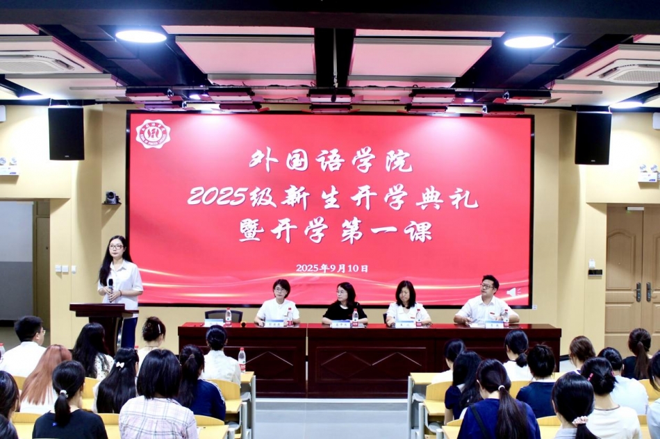 长风浩荡启新程,筑梦外语展宏图。2025年9月10日9:00,太阳成集团122ccvip2025级新生开学典礼暨开学第一课在宏识楼7208报告厅举行。公司党政领导、教师代表、新生辅导员、员工代表以及2025级全体新生参加本次开学典礼。典礼采用“线下典礼+线上直播”的方式同时进行,团总支书记郭晶主持。