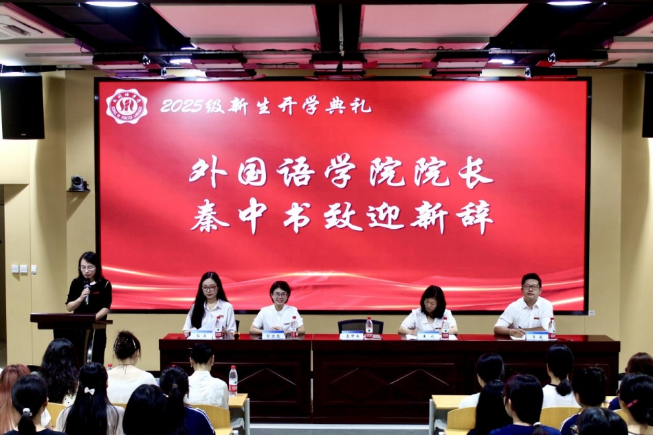 经理秦中书致迎新辞。她代表全院师生对2025级新生的到来表示热烈欢迎。并从“使命担当”“脚踏实地”“勇迎挑战”三个方面寄语新同学:要胸怀家国、放眼世界,在语言学习中增强自信与责任;要注重自主学习与全面发展,在实践中锤炼成长、突破自我;要顺应时代变革,培养批判性思维、跨文化理解与创新能力,成长为兼具共情力与适应力的复合型人才。最后,她勉励大家珍惜青春,立远大志向,在重人科书写属于2025级学子的璀璨篇章。