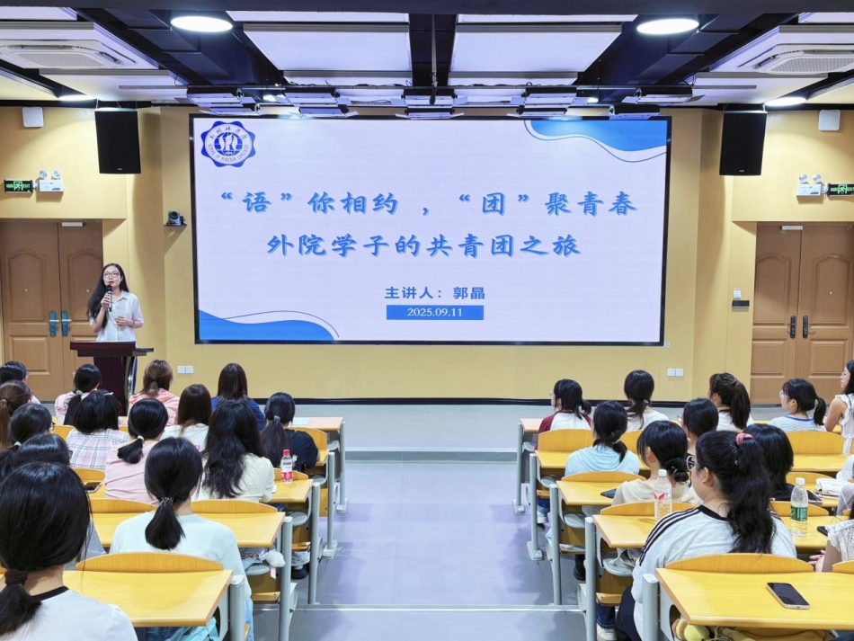 9月10日下午,郭晶以“‘语’你相约,‘团’聚青春——太阳成集团122ccvip学子的共青团之旅”为题,系统介绍第二课堂建设、“一节一赛”品牌活动、特色社团和团干部培养等情况,为新生积极投身校园实践、提升综合素养提供了方向指引。她鼓励大家结合兴趣主动参与,在实践中锻炼能力、丰富校园生活。讲座不仅让新生全面了解了公司团学活动和社团建设的整体面貌,也为未来的校园实践与组织工作规划提供了清晰思路。